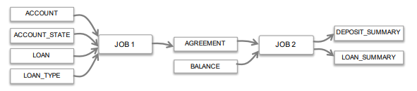 - Query 1,3은 JOB1을 수행하는데, ACCOUNT와 LOAN 데이터를 가공해서 AGREEMENT 테이블로 저장하고 있다. 이때, 몇몇 테이블은 단순히 필터링만 하고, 실제 데이터는 저장되지 않는다.