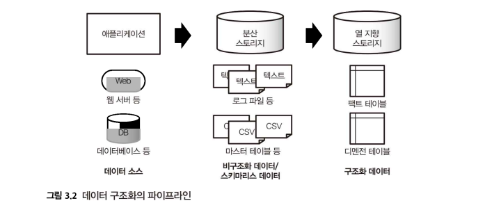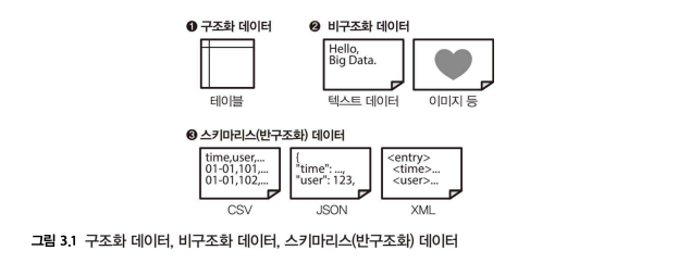 | 비구조화된 데이터 | 스키마가 없는 텍스트, 이미지, 동영상 등의 데이터 |